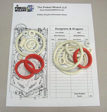 Rubber ring kit for a 1987 Bally/Midway Dungeons & Dragons pinball machine