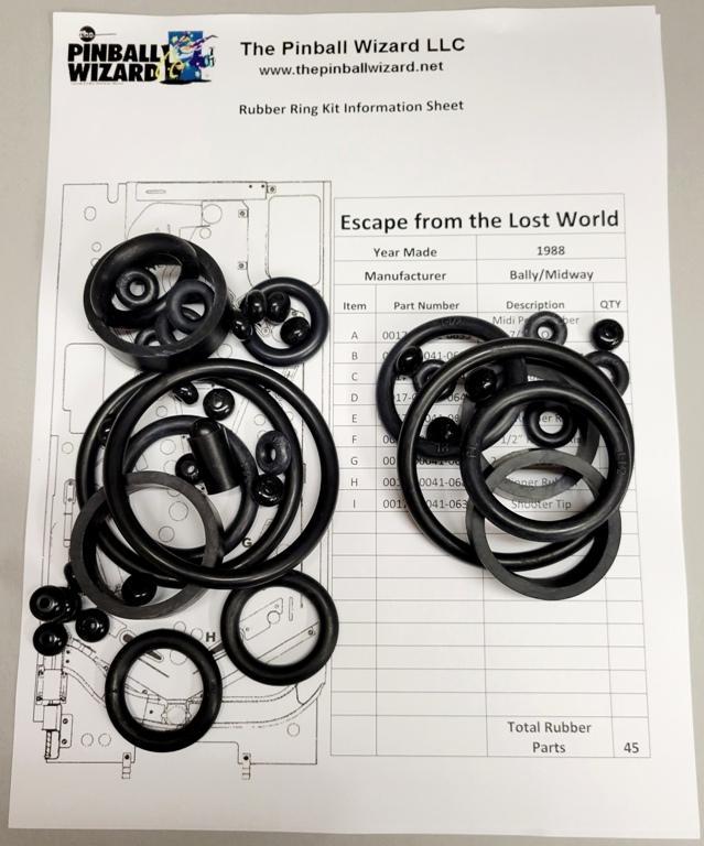 Rubber ring kit for a 1988 Bally/Midway Escape from the Lost World pinball machine