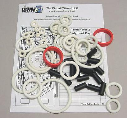 Rubber ring kit for a 1992 Williams Terminator 2 T2 Pinball machine
