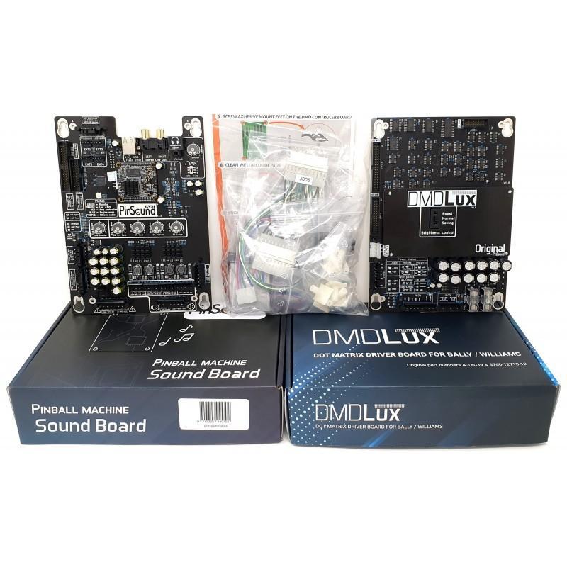 With this kit, you can replace your missing or damaged WPC95 audio/video board!This kit includes everything needed: PinSound+ sound board, DMDLux display controller board, wiring, ... and comes with the benefits of a PLUS sound board: play with original sounds or a new enhanced sound package!