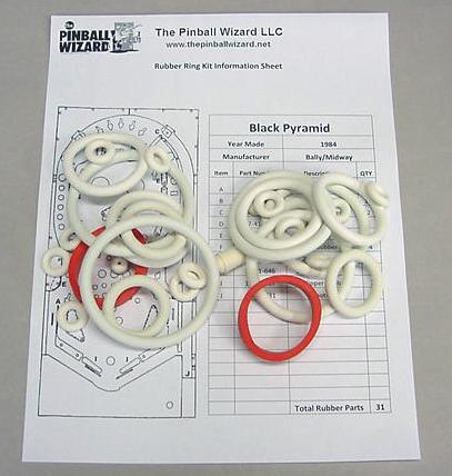 Rubber ring kit for a Bally/Midway 1984 Black Pyramid pinball machine