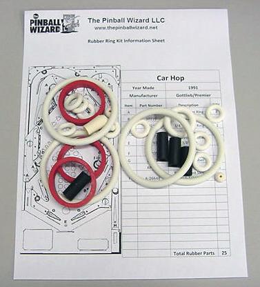 Rubber ring kit for a 1991 Gottlieb / Premier Car Hop pinball machine