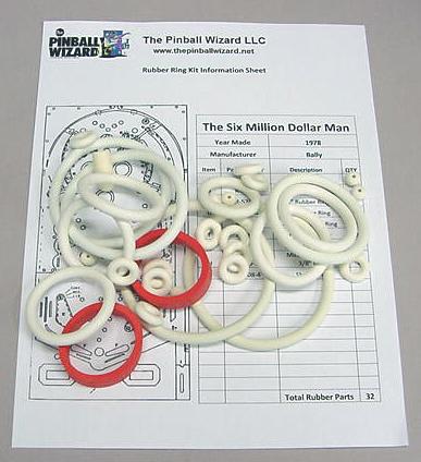 Rubber ring kit for a 1978 Bally 6 Million Dollar Man pinball machine